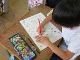 生活科の学習で水遊びをしました。鉄棒に的をつけて水鉄砲で的あてをしました。1度...