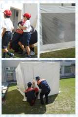 3,4時間目、2年生が防災学習に取り組みました。 まずは、避難所に置いてある簡易...