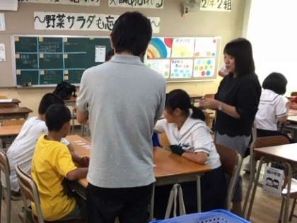 中学生の先輩が各教室までの誘導、授業のサポートをしてくれました。
