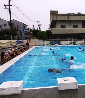時折、小雨が降る中ではありましたが、子どもたちは安全に、元気一杯泳いでいました。