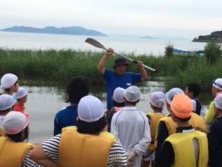 ライフジャケットを着用し、パドルの扱い方を習い、琵琶湖に漕ぎ出しました。