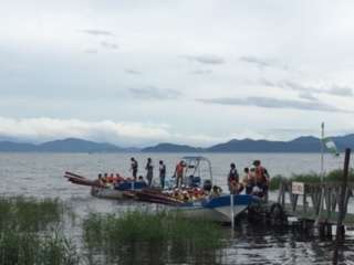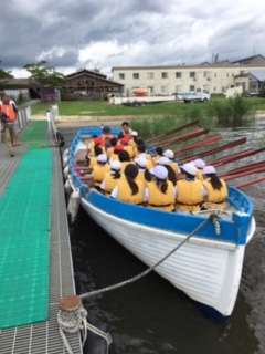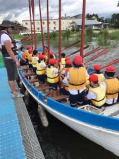 B班、C班の子どもたちが、カッター体験に挑みます。「櫂立て」をして、出航します。