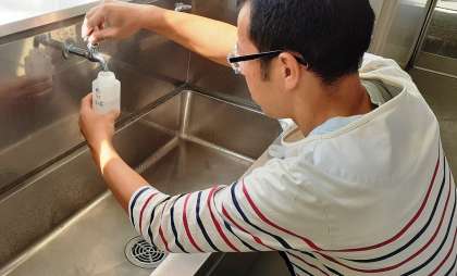 10月9日、学校薬剤師さんに来校いただき、水道水の水質検査をしていただきました。検査結果は問題なしです。