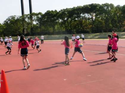 本校も含め住吉区内の2校と住之江区内の3校の6年生およそ350名が、サッカーとドッジボールで交流しました。