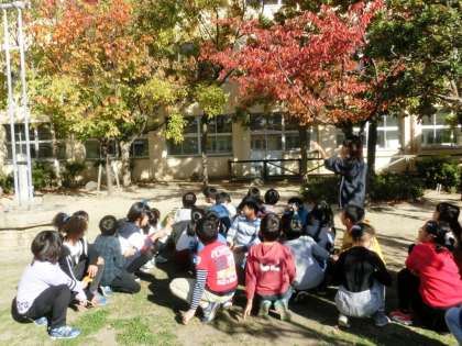 4年生は、秋が深まった『住小の森』で、虫の活動や植物の成長の様子を観察しました。