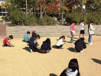 虫めがねの角度や黒い紙との距離を調整して、日光の集まる点を小さくするのに、時間がかかる子どももいましたが、黒い紙から煙があがると、とても喜んでいました。