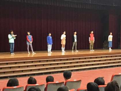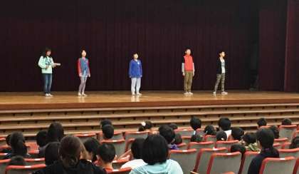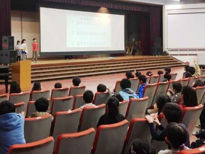毎週木曜日の児童集会では、集会委員がクイズやゲームをしてくれます。