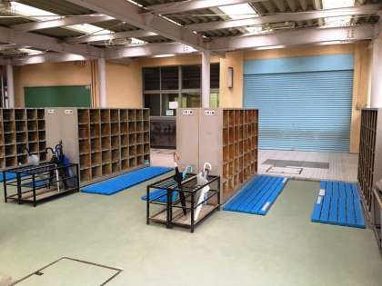始業式の朝一番から、気持ち良く学校生活を初めてもらいたいと、管理作業員さんが、綿ぼこりや落ち葉でいっぱいだった靴箱や周りをきれいにしてくれました。