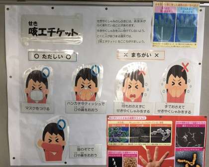 保健室の前に、「咳エチケット」の掲示をしています。