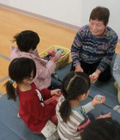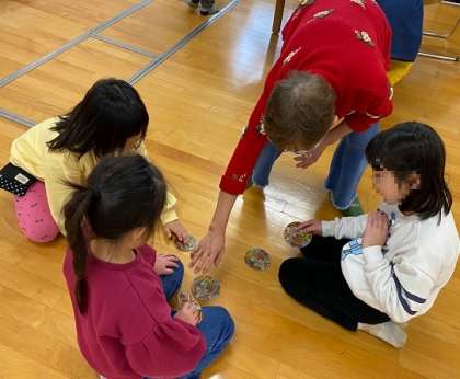 あやとり、おはじき、お手玉、めんこ等、遊び方のコツを教えてもらい、「できるようになった」と喜ぶ姿も見られました。
