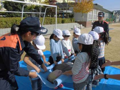 11/11(火)、住吉消防署の出前授業で、2年生と5年生が防災訓練を行いました。