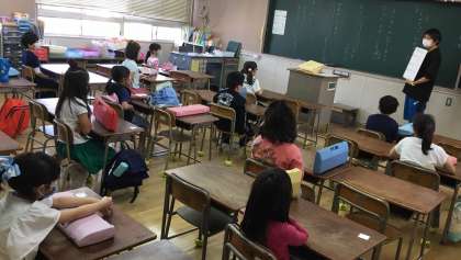 各クラスがAグループとBグループの2つに分かれて、年度初めの大切な書類や学習課題の受け渡し等を行いました。
