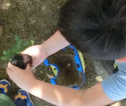 ナメクジに少しビックリしながら、苗を逆さにして取り出しました。