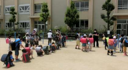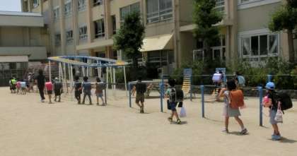 集団下校をはじめて1週間が経ちました。子どもたちは、並ぶのが早くなり、歩くのもまっすぐになってきました。