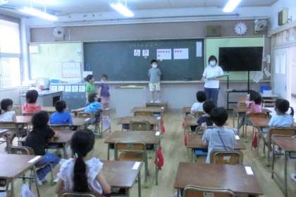「どちらがおおきい」 数字や丸の多い方をみんなで考えました。