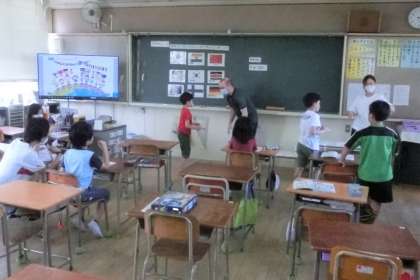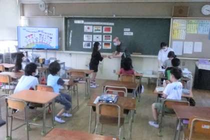 これから1年間お世話になるC‐NET、教科担当の先生に、「Hello!(ハロー)」とあいさつしました。