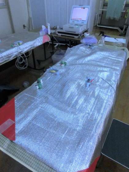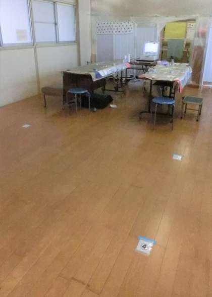 子どもたちの間隔をあけ、一人ずつ測定するたびに消毒を行う等、感染症対策を万全に実施しました。