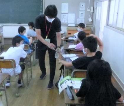 実験は、児童間の接触、実験道具の消毒、授業時数の確保等で実施が難しい学習活動の一つです。子どもたちが少しでも追体験できるように、演示実験や実物の提示、映像資料の活用等で工夫しています。