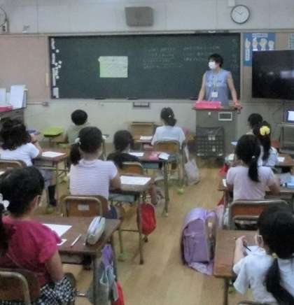 2年生の子どもたちは「がっこう たのしいよ」「じゅぎょう がんばってね」など、コメントを考えて書きました。