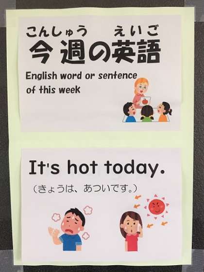 今週の英語は「It’s hot today.」(きょうは、あついです。)です。