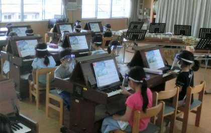 鍵盤ハーモニカを使わずに、オルガンで鍵盤を押さえる練習をします。