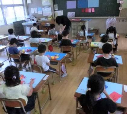 指で紙を細長くちぎって、サンゴをつくります。