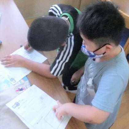 ペアになって、それぞれが選んだ漢字一字を交流します。