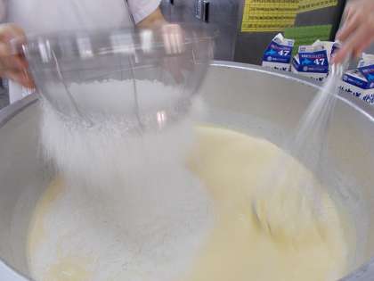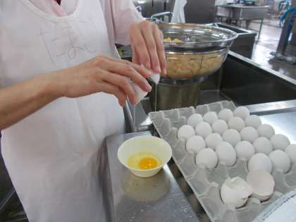 りんご(カット缶)、小麦粉、鶏卵、クリーム、砂糖、コーンフレークを使用します。