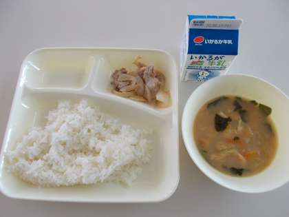 「みそ汁」は、鶏肉、うすあげ、キャベツ、にんじん、わかめを使用しています。