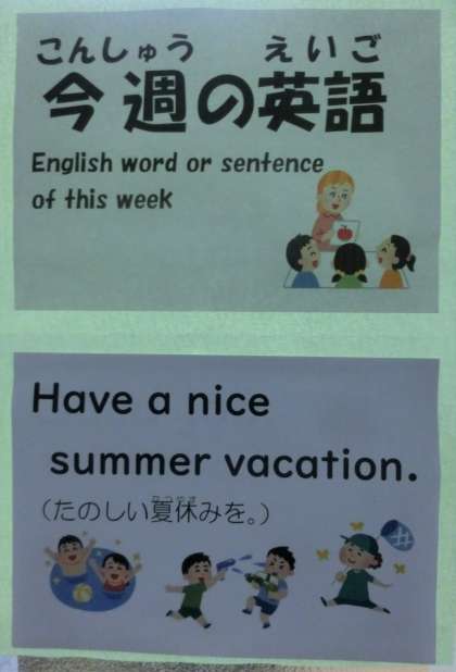 8月7日は1学期の最終日ですが、今週の英語の発表がありました。「Have a nice summer vacation.」です。