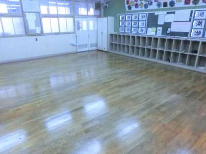 各教室の床は、ワックスがかけられ、ピカピカに輝いています。