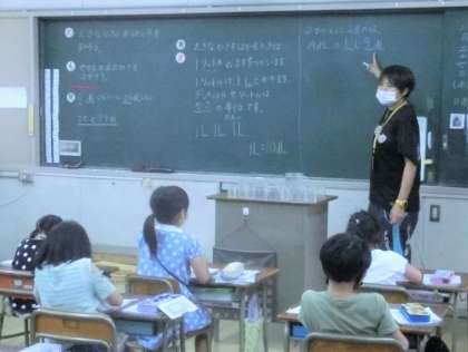 おおきなかさのあらわし方について、実際にカップに水を入れながら考えました。