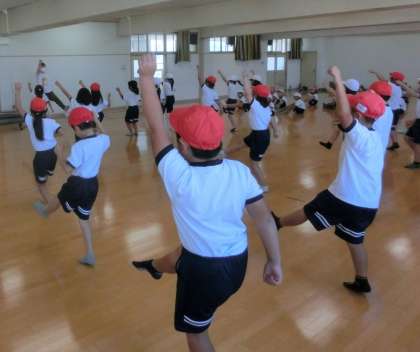 運動会の団体演技の練習です。全員の手拍子がしっかりそろっていました。