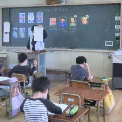 よくかんで食べると、「だ液がでる」「消化を助ける」「食べ過ぎを防ぐ」「集中力を高める」、たくさんのいいことがあることを学びました。