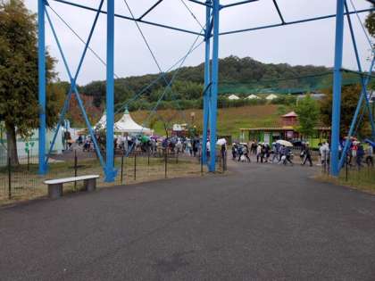 バスに移動をはじめると、雨が降ってきました。姫路セントラルパークでは、雨具なしで活動できました。