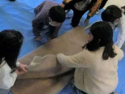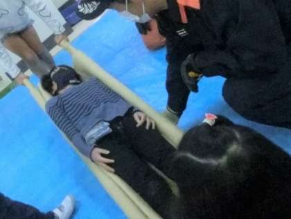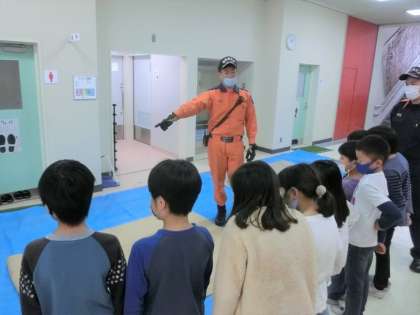 子どもたちは興味津々で、「出動していない時は、何をしているのですか」「住吉消防署ではたらく人は何人くらいですか」等、いろいろな質問を消防士さんにしていました。