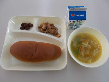 「うずら豆のグラッセ」は、乾物のうずら豆を給食室の釜で柔らかく煮て砂糖、塩、バターで味つけした洋風の煮ものです。