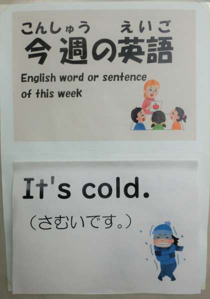 11月18日に放送で子どもたちに伝えた今週の英語は「It’s cold.(イッツ コールド)」、「寒いです。」でしたが、暖かい日が続いています。