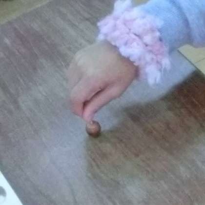 どんぐりごまをつくりました。上手なお友だちにコツを教わったり、竹串を短くしたり工夫すると、うまく回せるようになりました。
