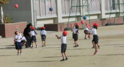 最後は、ボールを投げ上げ、キャッチするまでに、何回手をたたけるかに挑戦しました。