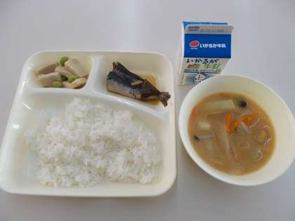 「いわしのしょうが煮」は、いわしをしょうが、切りこんぶ、調味液で、学級毎の入れ物に入れてオーブンで煮ています。1人2匹ずつです。