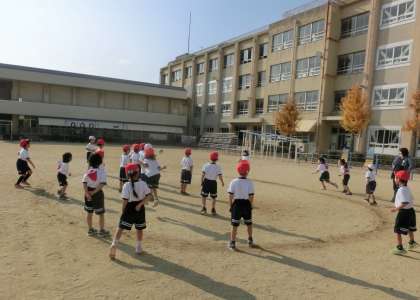 前半は鉄棒を、後半は子どもたちが楽しみにするドッジボールをしました。円の内側の人を外側の人がねらいます。途中から、ボールが2球になります。