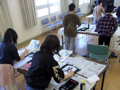 3年〜6年生が「書初め」をしました。一番上手に書けた作品は雲龍紙に貼り、校内で掲示します。2番目の作品はお家に持ち帰っています。