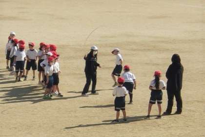「ジョギング・チャレンジ」の後は、みんなで長縄をしました。