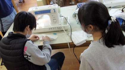 雑巾を縫いました。できあがった雑巾は学校に残していきます。