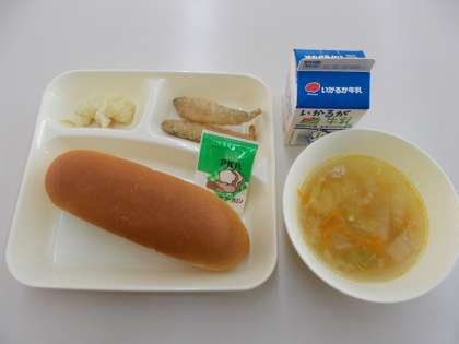 「はくさいのスープ」は、鶏肉、はくさい、コーン、にんじん、えだまめを使ったスープです。