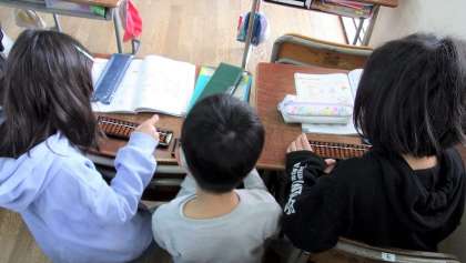 そろばんの得意な児童が「ミニ先生」として、お友だちに教えます。