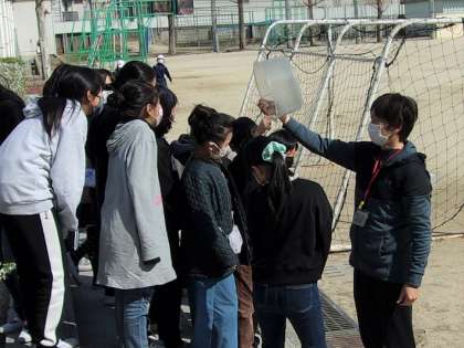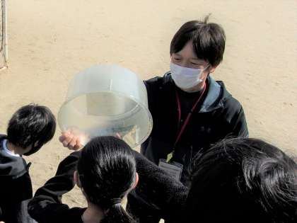 雨上がり、地面から蒸発した水をつかまえました。水そうの内側に水滴がついています。