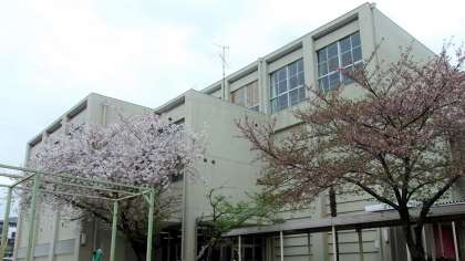 会場の講堂前の3本の桜は、開花がずれたので、1本は花がまだ残っています。当日は、会場での座席、写真撮影等において、密にならないようにご協力をお願いいたします。