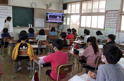 現5年生が、4年生の時に行った合奏と合唱の映像を見ました。